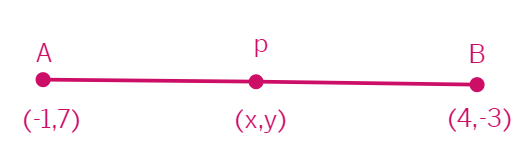 Let the coordinates of the point be P(x, y) which divides the line segment joining the points (-1, 7) and (4, - 3) in the ratio