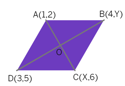 If (1, 2), (4, y), (x, 6) and (3, 5) are the vertices of a parallelogram taken in order, find x and y.