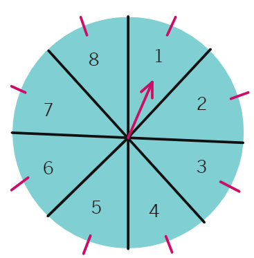 12. A game of chance consists of spinning an arrow which comes to rest pointing at one of the numbers 1, 2, 3, 4, 5, 6, 7, 8 (see the below figure), and these are equally likely outcomes. What is the probability that it will point at