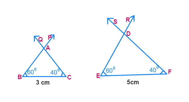 Now measure ∠A= ∠D, ∠B = ∠E and ∠C =∠F, i.e., the corresponding angles of the two triangles are