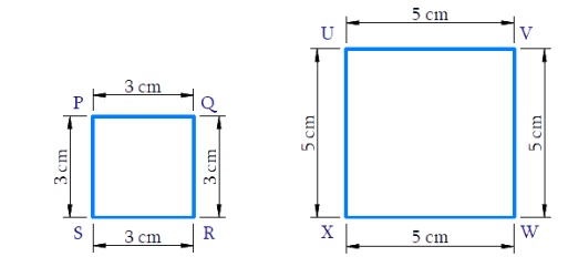 Two equilateral triangles of sides 2 cm and 6 cm.