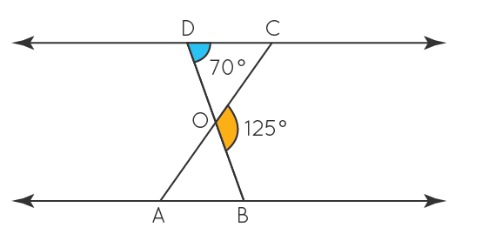 2. In Fig, ∆ ODC ~ ∆ OBA, ∠ BOC = 125° and ∠ CDO = 70°. Find ∠ DOC, ∠ DCO and ∠ OAB