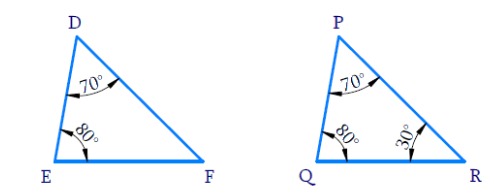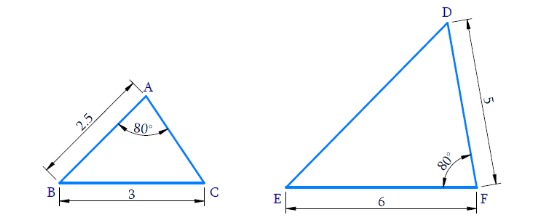 Hence, the triangles are not similar, ΔABC ≠ ΔDFE
