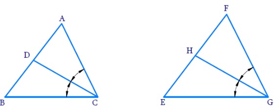 10. CD and GH are respectively the bisectors of ∠ACB and ∠EGF such that D and H lie on sides AB and FE of ∆ABC and ∆EFG respectively. If ∆ABC ~ ∆FEG, show that: