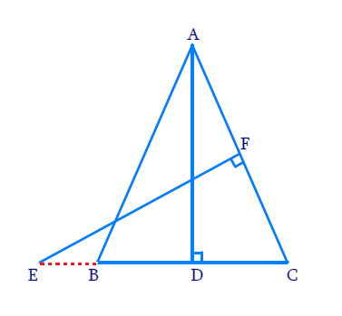 11. In Fig, E is a point on side CB produced of an isosceles triangle ABC with AB = AC. If AD ⊥ BC and EF ⊥ AC, prove that ∆ ABD ~ ∆ ECF