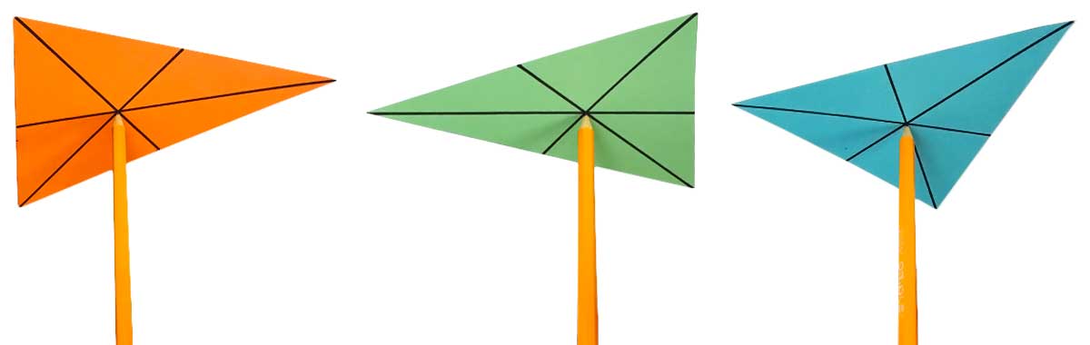 The centroid is also the “balancing point” of a triangle. Draw a triangle on some cardboard, cut it out, and find the three medians. If you were accurate, you can now balance the triangle on the tip of a pencil, or hang it perfectly level from a piece of string that’s attached to its centroid: