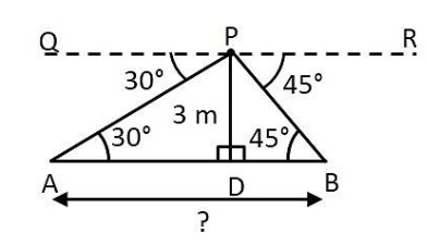7. From a point on a bridge across a river, the angles of depression of the banks on opposite sides of the river are 30° and 45°, respectively. If the bridge is at a height of 3 m from the banks, find the width of the river.