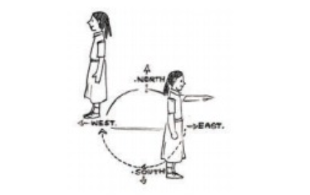 Thus, we start from East, move 180 degrees clockwise and stop at