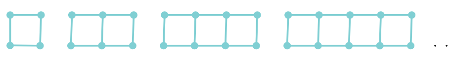 11. (a) Look at the following matchstick pattern of squares. The squares are not separate. Two neighbouring squares have a common matchstick. Observe the patterns and find the rule that gives the number of matchsticks in terms of the number of squares.. (Hint : If you remove the vertical stick at the end, you will get a pattern of Cs.)