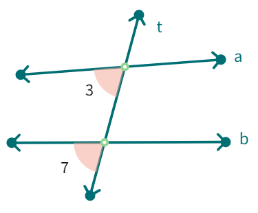 When 't' cuts the parallel lines, m and n, we get : ∠3 = ∠7 (vertically opposite angles).