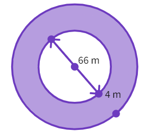 13. A circular flower bed is surrounded by a path 4 m wide. The diameter of the flower bed is 66 m. What is the area of this path? (Round off to one decimal place and π = 3.14)