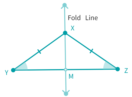 Using paper, cut out an isosceles triangle, say XYZ such that XY = XZ. Now fold it so that the Z vertex lies on the Y vertex. The line, say XM through X, is called the axis of symmetry. And we also find that ∠Y and ∠Z fit on each other