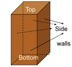 3. A box has six faces. We may call them top, bottom and side walls (4 of them).