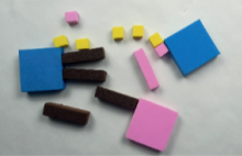 Algebraic tiles aid students to understand factors of an algebraic expression and also infer the process to identify the factors. As shown in the given below figures, the algebraic tiles kit contains multiple copies of shapes of six different types, each representing a term in the algebraic expression.