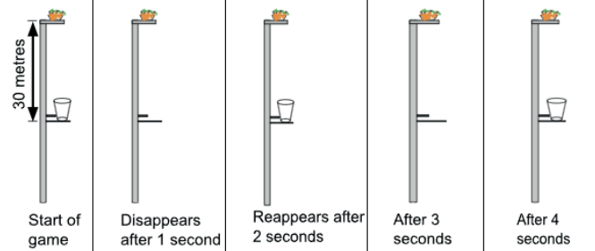 (ii) As the game level increases, additional challenges are added. The basket disappears and reappears every alternate second, as shown below.