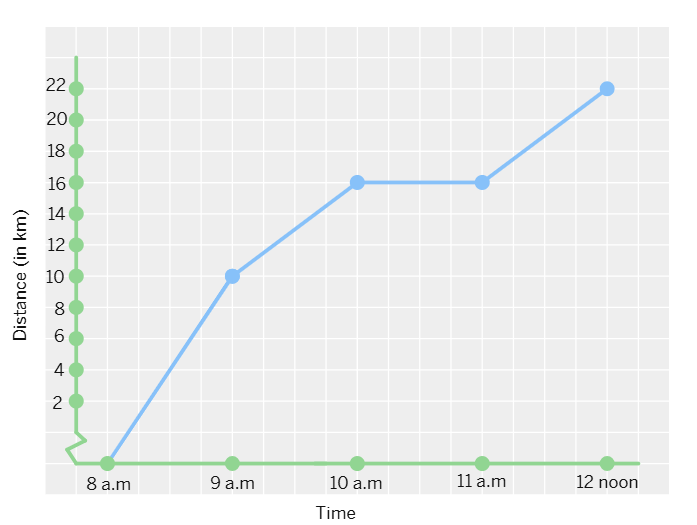 6. A courier-person cycles from a town to a neighbouring suburban area to deliver a parcel to a merchant. His distance from the town at different times is shown by the following graph.