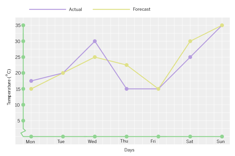 4. The following graph shows the temperature forecast and the actual temperature for each day of a week.