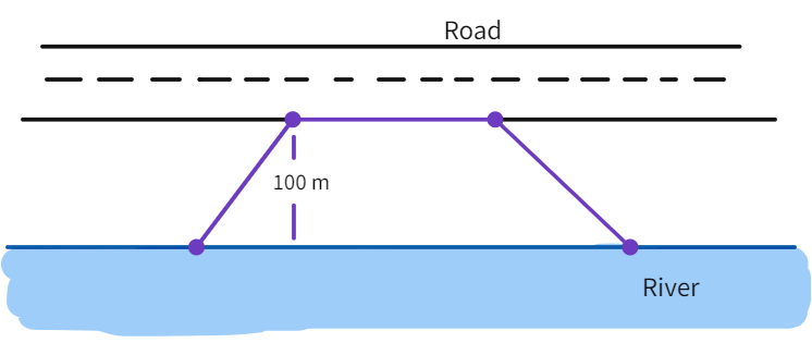 8. Mohan wants to buy a trapezium shaped field. Its side along the river is parallel to and twice the side along the road. If the area of this field is 10500