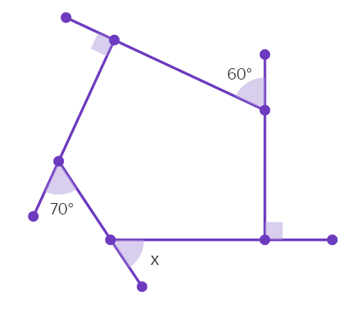 Solution: Our exterior angles are : x ,90°, 60°, 90°, 70°.