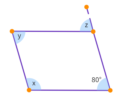 2. Consider the following parallelograms. Find the values of the unknowns x, y, z:
