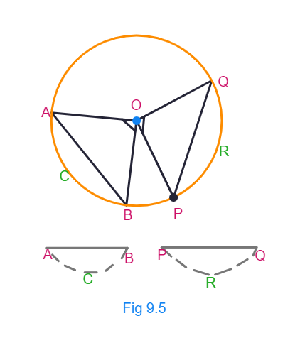 You will get two segments ACB and PRQ of the circle. If you put one on the other, what do you observe? They cover each other, i.e., they are congruent. So AB = PQ.