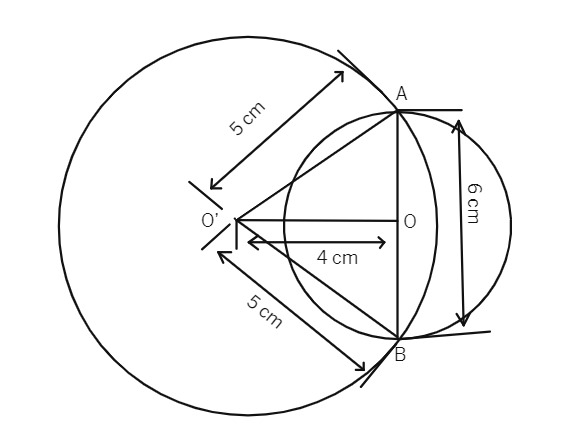 Two circles of radii 5 cm and 3 cm intersect at two points and the distance between their centres is 4 cm. Find the length of the common chord.