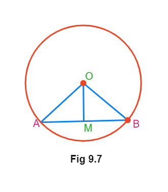Given: OM is a perpendicular from the centre O i.e. ∠OMA = ∠OMB = 90°.