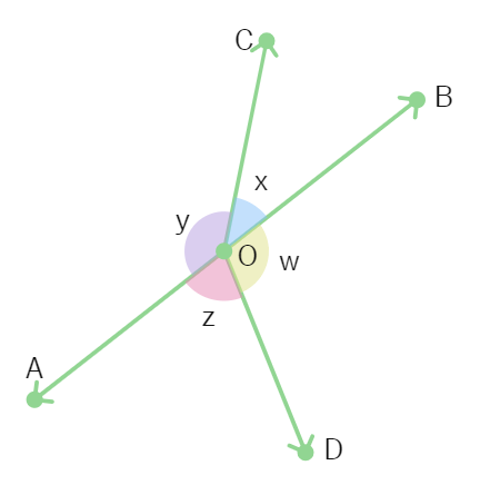 In the figure, if x + y = w + z, then prove that AOB is a line.