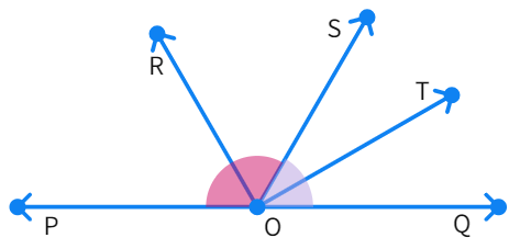 Since, here the sum of measures of the two adjacent angles is equal to 180°, they are together called a linear pair of angles.