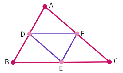 Example 6: In ∆ ABC, D, E and F are respectively the mid-points of sides AB, BC and CA. Show that ∆ ABC is divided into four congruent triangles by joining D, E and F.