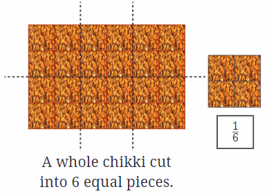 The figures below show different fractional units of a whole chikki.