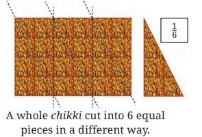 By dividing the whole chikki into 6 equal parts in different ways, we get