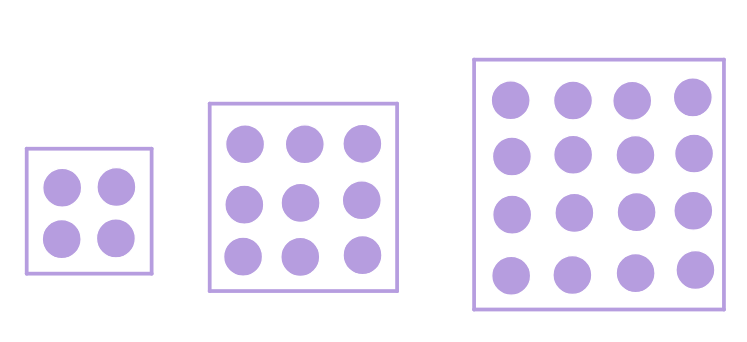 A picture can explain it. Visualising with a picture can help explain the phenomenon. Recall that square numbers are made by counting the number of dots in a square grid.