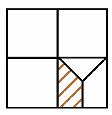 There are different ways to solve this problem. Here is one of them: Let the area of the whole square be 1 square unit. We can see that the top right square (in figure below), occupies 1 4 of the area of the whole square.