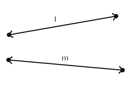 In the figure, draw a transversal t to the lines l and m such that one pair of corresponding angles is equal. You can measure the angles with a protractor.