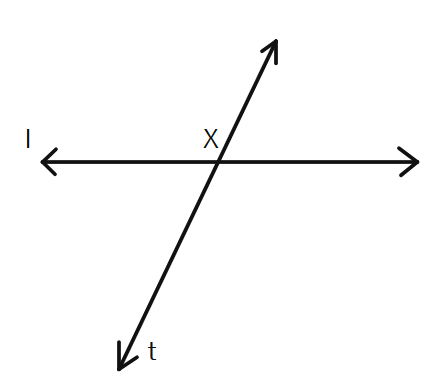 Step 1: Draw a line l and a transversal t intersecting it at point X.