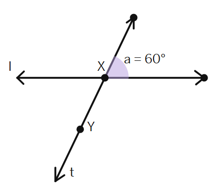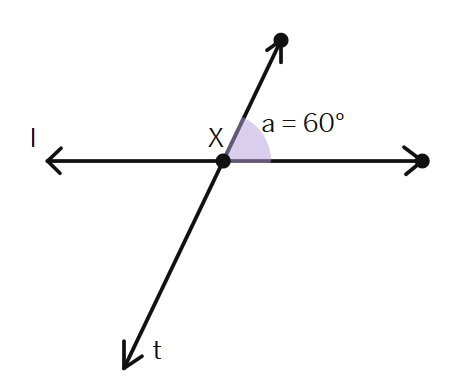 Step 2: Measure ∠a formed by lines l and t (let us say it is 60°).