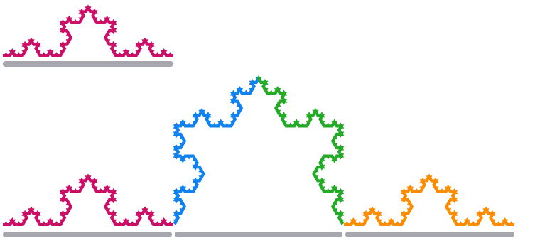 To create our own fractals, we have to start with a simple pattern and then repeat it over and over again, at smaller scales.