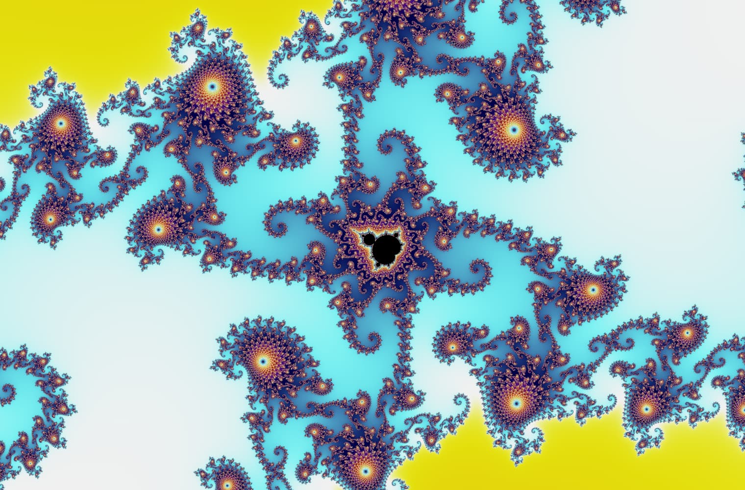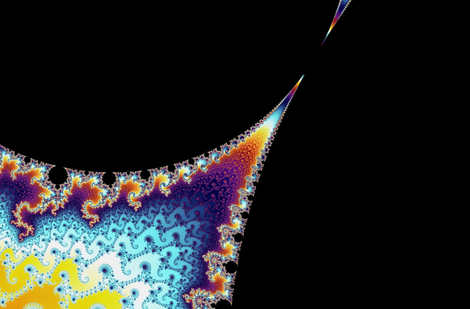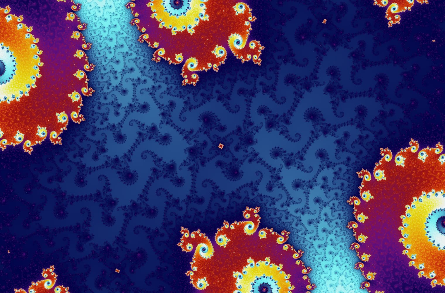 We don’t have this problem today – the images below are all of different Julia sets. The different colours indicate how quickly the sequence at that point diverges: