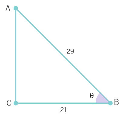 3 : Consider Δ ACB, right-angled at C, in which AB = 29 units, BC = 21 units and ∠ ABC = θ. Determine the values of :