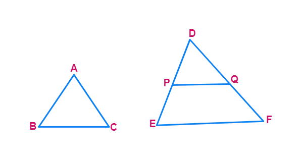This theorem can be proved by taking two triangles ABC and DEF such that ∠ A = ∠ D, ∠ B = ∠ E and ∠ C = ∠ F (see in fig)