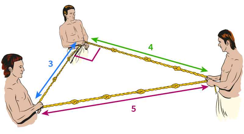 The ancient Egyptians didn’t know about Pythagoras’ theorem, but they did know about the 3-4-5 triangle. When building the pyramids, they used knotted ropes of lengths 3, 4 and 5 to measure perfect right angles.
