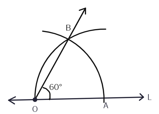 Instead of using a protractor, we can construct a 60° angle using only a compass and ruler. Here’s how: