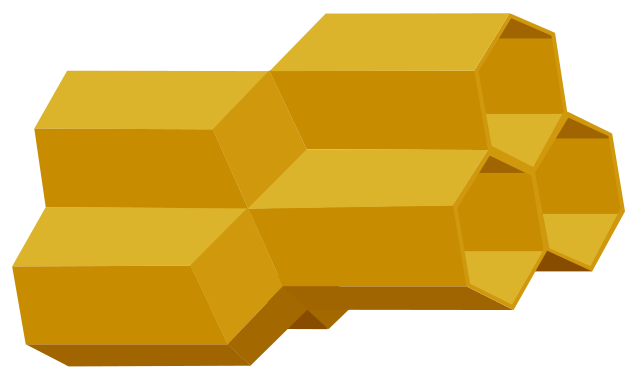 Honeycomb cells are always horizontally aligned. They share walls with the neighbor cell to decrease the amount of wax used to build each cell.