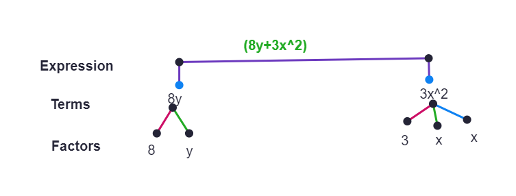 What are the terms in the following expressions? Show how the terms are formed. Draw a tree diagram for each expression.
