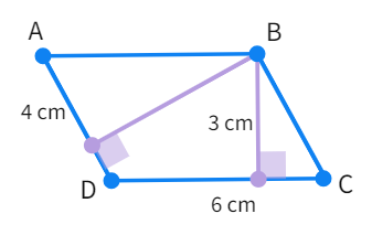The two sides of the parallelogram ABCD are 6 cm and 4 cm. The height corresponding to the base CD is 3 cm. Find the: