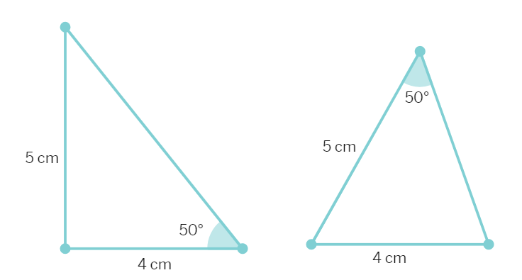 Now, let us construct two triangles, whose sides are 4 cm and 5 cm and one of the angles is 50° and this angle is not included in between the equal sides. Are the two triangles congruent?