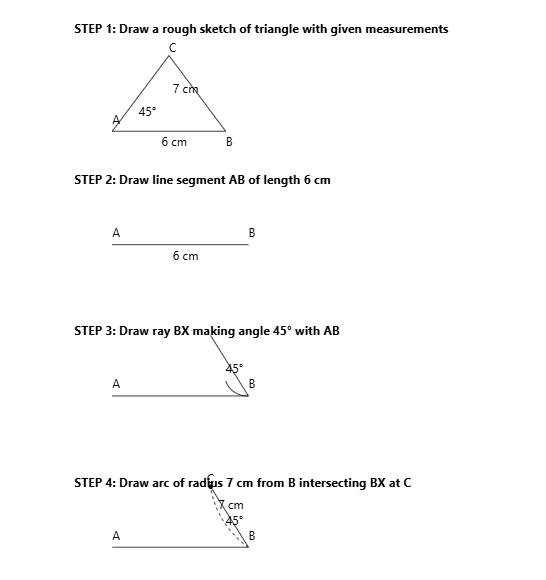 2. Construct △ABC in which AB = 6 cm, BC = 7 cm and ∠B = 45°