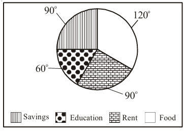 5. The adjoining pie chart gives the expenditure on various items during a month for a family. (The numbers written around the pie chart tell us the angles made by each sector at the centre.)