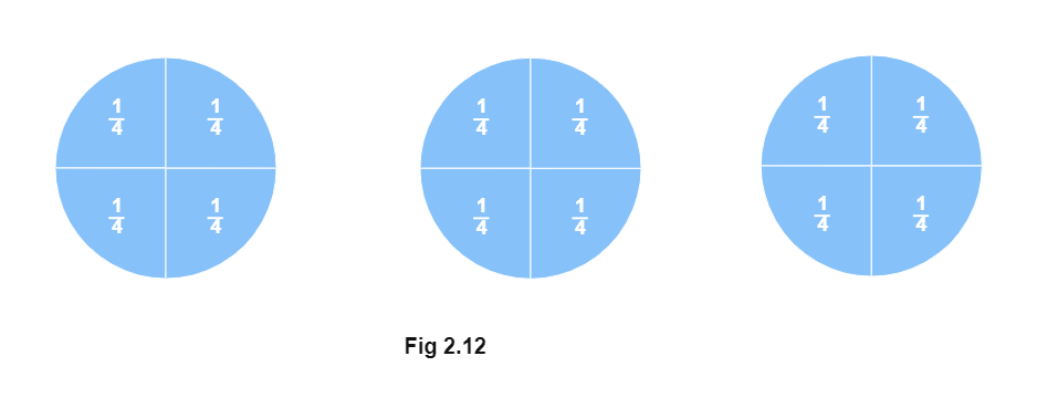 Imagine a circle divided into 4 equal parts. If